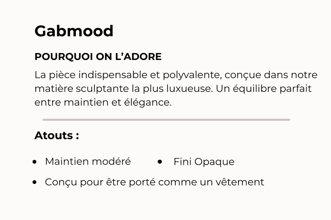 Gabmood, ce n’est pas juste un body. C’est un engagement de confort et de maintien. Chaque pièce est pensée pour offrir un galbe à 360 degrés sans aucune sensation de contrainte, pour vous aider à vous sentir belle, confiante et libre.