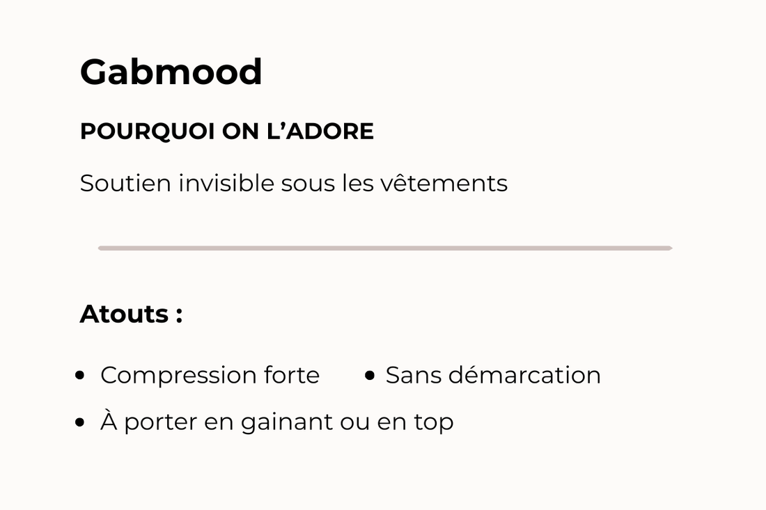 Gabmood, ce n’est pas juste un body. C’est une promesse de bien-être et de confiance. Chaque pièce est pensée pour offrir un galbe à 360° sans aucune sensation de serrage, pour vous aider à vous sentir belle, confiante et libre.